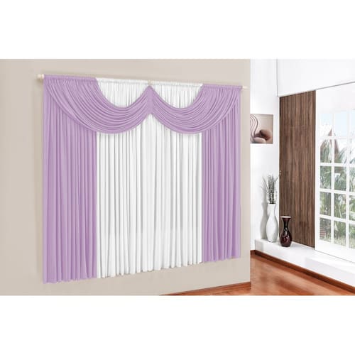 Cortina Paris 3 Metros Varão Simples Tecido Malha - Lilás / Branco Contém na Embalagem: 01 Cortina 3,00m x 2,80m para Varão Simples Consumo: 5,40 Metros Composição: Tecido Malha 100% Poliéster Marca: Casa Nobre Enxovais