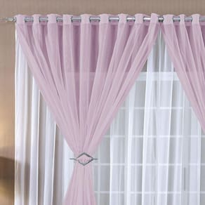 Além do tecido de qualidade, a Cortina Paula acompanha um par de abraçadeiras cromados, que adicionam um charme especial ao conjunto. As abraçadeiras são práticas e funcionais, permitindo que você prenda as cortinas de forma elegante e organizada quando desejar deixar a entrada de luz total.