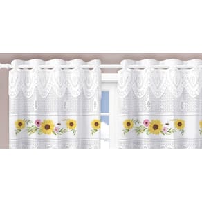 Cortina Pia/vitro Bando Passione Renda Cozinha1,60x0,75x0,20 Cor: Girassol Cortina de Renda indicado para Janela ou Pia com 1,60m de largura e 75m de altura, ideal para varão com até 1,5 m de comprimento. A Linha Renda é leve, versátil, com lindos detalhes. Desenvolvido com uma técnica exclusiva de entrelaçamento dos fios, dando um toque charmoso e romântico ao ambiente. Composto por: 1 Cortina de Renda para Janela ou pia Interlar 1,60x80cm Tamanho: Largura: 1,60 m Altura: 80 cm Indicações: - Varão com Até 1,50 m de Comprimento; - Tipo do Suporte: Simples para 1 varão ; - Suportes e Varão não acompanham o Produto. Composição do Tecido: Renda 100% Poliéster