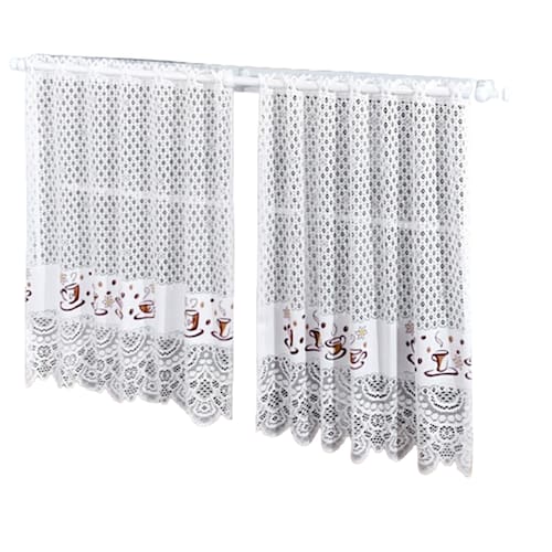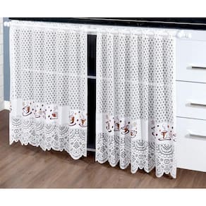 Cortina de Renda indicado para Janela ou Pia Café, com 1,60m de largura e 80cm de altura, ideal para varão com até 1,5 m de comprimento. A Linha Renda é leve, versátil, com lindos detalhes. Desenvolvido com uma técnica exclusiva de entrelaçamento dos fios, dando um toque charmoso e romântico ao ambiente. Composto por:1 Cortina de Renda para Janela ou pia Interlar 1,60x80cm Tamanho:Largura: 1,60 mAltura: 80 cm Indicações:- Varão com Até 1,50 m de Comprimento;- Tipo do Suporte: Simples (para 1 varão);- Suportes e Varão não acompanham o Produto. Composição do Tecido: Renda 100% Poliéster