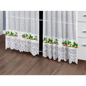 Cortina Pia Vitro Renda Cozinha Morango 1,60X0,80 Alt Cortina de Renda indicado para Janela ou Pia Morango com 1,60m de largura e 80cm de altura, ideal para varão com até 1,5 m de comprimento. A Linha Renda é leve, versátil, com lindos detalhes. Desenvolvido com uma técnica exclusiva de entrelaçamento dos fios, dando um toque charmoso e romântico ao ambiente. Composto por: 1 Cortina de Renda para Janela ou pia Interlar 1,60x80cm Tamanho: Largura: 1,60 m Altura: 80 cm Indicações: - Varão com Até 1,50 m de Comprimento; - Tipo do Suporte: Simples para 1 varão ; - Suportes e Varão não acompanham o Produto. Composição do Tecido: Renda 100% Poliéster