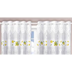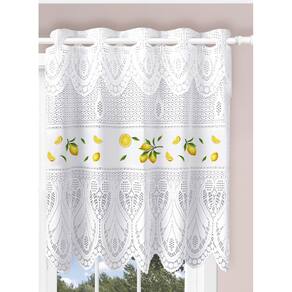 Cortina Pia Vitro Stilo Renda Cozinha 1,60X0,80 Alt Cor: Limão Cortina de Renda Stilo indicado para Janela ou Pia Limão com 1,60m de largura e 80cm de altura, ideal para varão com até 1,5 m de comprimento. A Linha Renda é leve, versátil, com lindos detalhes. Desenvolvido com uma técnica exclusiva de entrelaçamento dos fios, dando um toque charmoso e romântico ao ambiente. Composto por: 1 Cortina de Renda para Janela ou pia Interlar 1,60x80cm Tamanho: Largura: 1,60 m Altura: 80 cm Indicações: - Varão com Até 1,50 m de Comprimento; - Tipo do Suporte: Simples para 1 varão ; - Suportes e Varão não acompanham o Produto. Composição do Tecido: Renda 100% Poliéster