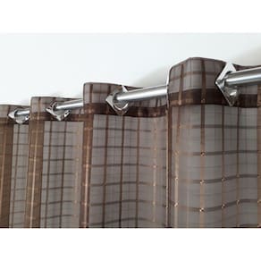 Com acabamento refinado toda em bainha,e com ilhós quadrados cromado, a cortina voal xadrez em tecido vem ganhando espaço por ser bem suave e bonita.