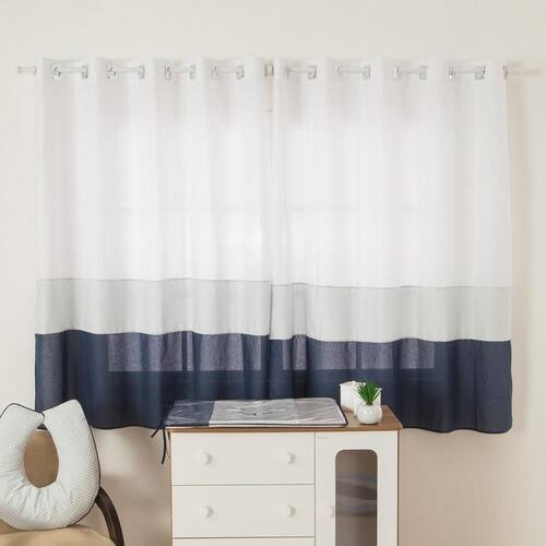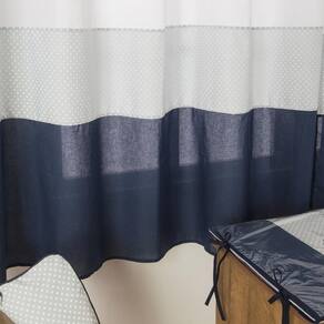 Cortina Quarto De Bebê E Infantil Balãozinho Azul Marinho Para completar a decoração de quarto do seu bebê, foi fabricado a Cortina Balãozinho, combinando com o Kit de Bebê , dará aquele toque especial que faltava. 01 Cortina 3,00m largura esticada x 1,70m altura Indicada para varão Simples de 2,00m para ficar franzida Composição: Tecido Estampado: 100% Algodão Tecido Liso: 100% Poliéster