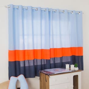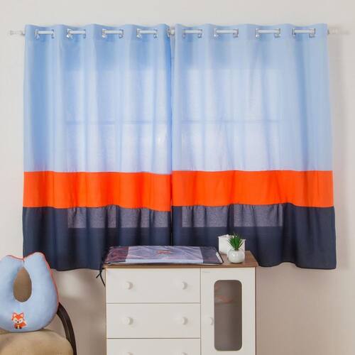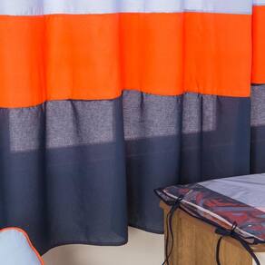 Cortina Quarto De Bebê Raposinha Laranja E Azul Para completar a decoração de quarto do seu bebê, foi fabricado a Cortina Raposinha, combinando com o Kit de Bebê , dará aquele toque especial que faltava. 01 Cortina 3,00m largura esticada x 1,70m altura Indicada para varão Simples de 2,00m para ficar franzida Composição: Tecido Estampado: 100% Algodão Tecido Liso: 100% Poliéster