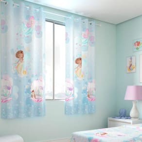 Cortina quarto infantil blackout santista 280cm x180cm corta luz - sereias