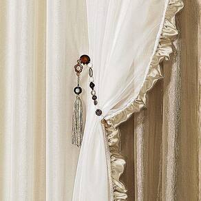 Cortina Rainha, trabalhada com lindos detalhes em babadinhos, confeccionada em voal e seda, acompanha lindas abraçadeiras em pingentes, produto que embeleza e destaca qualquer ambiente.