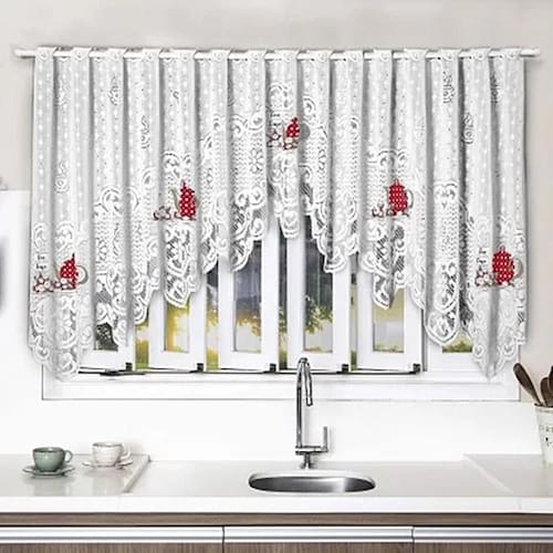 Cortina renda bando cascata 3,00 m x 1,00 m alt hora do chá Cor: branca Cortina para cozinha cascata renda bule 3,00 x 1,00m , a melhor cortina de renda, cortina para cozinha interlar é uma cortina em estilo renda com uma linda estampa para inspirar a sensação relaxante de estar em um jardim. Com um excelente acabamento e design sofisticado, essa cortina é de chamar a atenção pela beleza e bom gosto. É confeccionada com um material sintético que garante uma maior durabilidade e praticidade. Informações - contém: 01 cortina para cozinha cascata em renda para varão - tamanho: cortina - 3,00 m largura x 1,00 - tamanho recomendado do varão - 2,00 m - composição: 100% poliéster - obs.: não acompanha varão Verifique as medidas antes da compra Marca: Não Informado