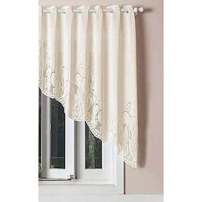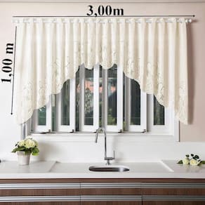 - contém: 01 cortina para cozinha cascata em renda para varão - tamanho: cortina - 3,00 m largura x 1,00 - tamanho recomendado do varão - 2,00 m - composição: 100% poliéster