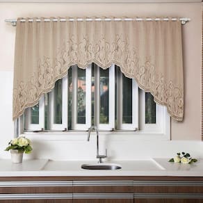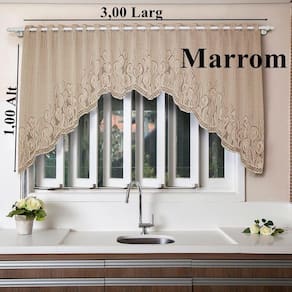 - contém: 01 cortina para cozinha cascata em renda para varão - tamanho: cortina - 3,00 m largura x 1,00 - tamanho recomendado do varão - 2,00 m - composição: 100% poliéster