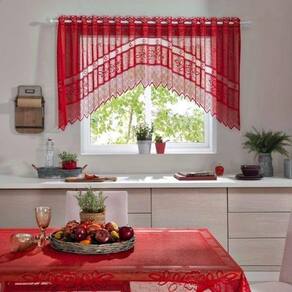 Cortina renda cozinha cascata 3,00 m x 1,00 alt vermelho Cortina para cozinha cascata renda vermelho 3,00 x 1,00m retro, a melhor cortina de renda, cortina para cozinha interlar é uma cortina em estilo renda com uma linda estampa para inspirar a sensação relaxante de estar em um jardim.