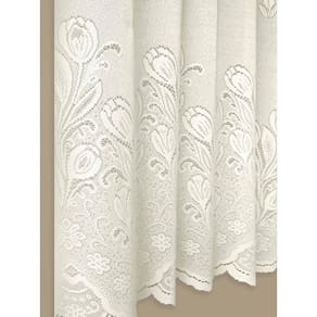 Cortina para cozinha renda bege tulipa, estilo de renda com uma linda estampa com tulipas tem um bandô de 30 centímetros que incrementa a cortina. É confeccionada com um material sintético que garante uma maior durabilidade e praticidade. Vai deixar a sua cozinha linda e pronta pra arrasar