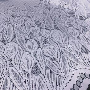 Cortina para Cozinha Interlar Renda Branca Tulipa, estilo de renda com uma linda estampa com tulipas tem um bandô de 30 centímetros que incrementa a cortina.