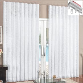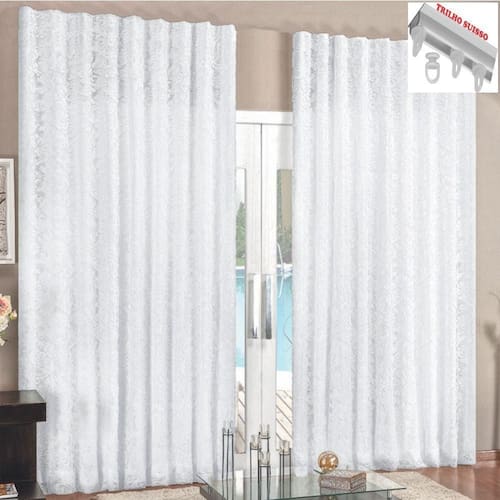 Cortina Rendada com Forro de Voal 4 Metros para Trilho Suisso - Branca