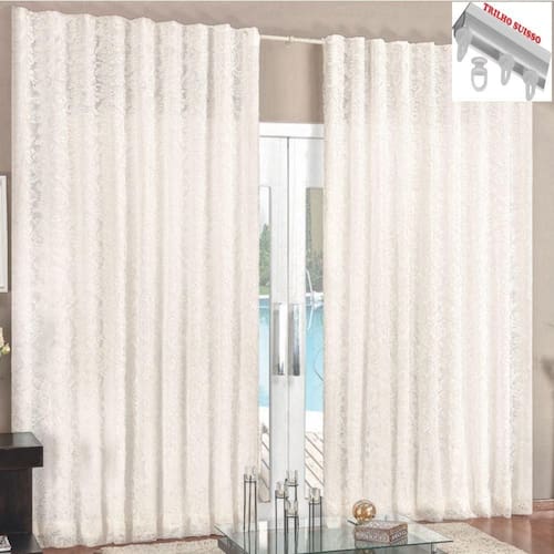 Cortina rendada com forro voal 2 metros para trilho suisso - palha cortina rendada com forro de voal 2 metros para trilho suisso