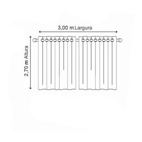 Contém: 01 cortina 2,70m altura x 3,00m largura no total, sendo: 02 partes de 2,70m altura x 1,50m largura com 16 ilhós cromados no total, sendo 8 de cada lado Indicada para varão simples de 2,00m de até 28mm Detalhe: consumo de tecido 3,00m largura por 2,70m altura