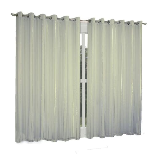 Contém: 01 cortina 2,70m altura x 3,00m largura no total, sendo: 02 partes de 2,70m altura x 1,50m largura com 16 ilhós cromados no total, sendo 8 de cada lado Indicada para varão simples de 2,00m de até 28mm Detalhe: consumo de tecido 3,00m largura por 2,70m altura