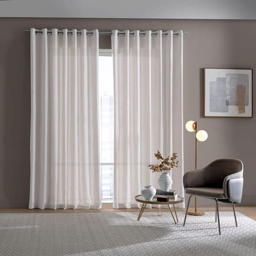 Observações: Considere as medidas e formatos especificados na descrição do produto. O consumo de tecido refere se a cortina totalmente esticada. Seguir as instruções de conservação que acompanha a etiqueta do produto. Não acompanha suporte, trilho ou varão. Fotos ilustrativas.
