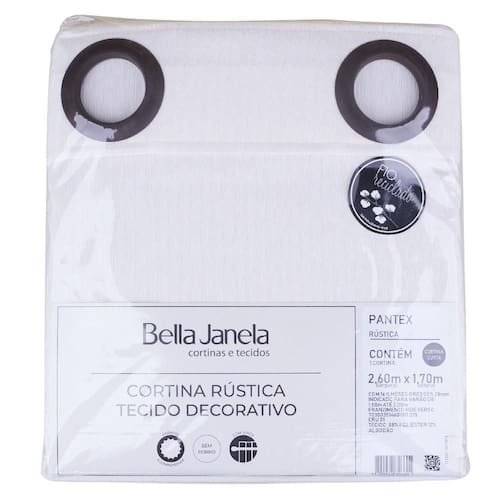 A Cortina Rústica Pantex da Bella Janela é feita com tecido de fino acabamento proponto uma textura de linho. Versátil e elegante, é perfeita para decorar variados ambientes com beleza e bom gosto, permitindo a luminosidade em seu ambiente e trazendo a privacidade e beleza para o seu lar. Indicado para quarto, sala ou escritório. Cortina indicada para varão de 2,00m para maior franzimento, contendo 28 ilhoses escovado. Foto ilustrativa, não acompanha varão.