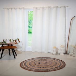 Os ilhoses cromados de alta qualidade garantem instalação prática e deslizamento suave no varão, conferindo um toque moderno ao ambiente.