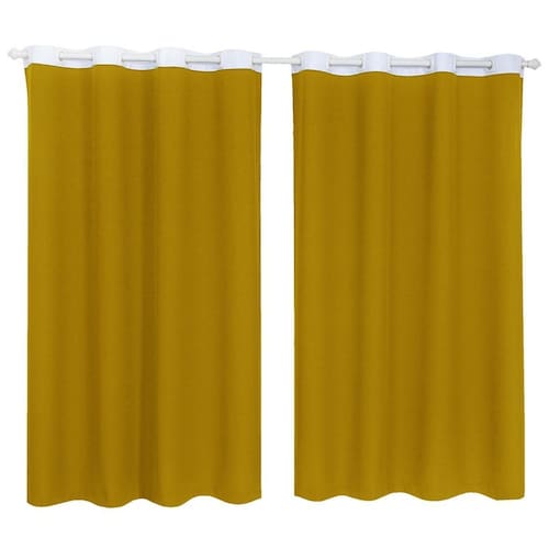 Contém: 01 cortina 2,50m altura x 3,00m largura no total, sendo: 02 partes de 2,50m altura x 1,50m largura com 16 ilhós brancos quadrados no total sendo 8 de cada lado Indicada para varão simples de até 2,00m de até 28mm Detalhe: faixa branca em todas as cores onde fica o ilhós