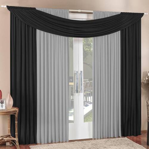 Cortina Tendência 3,00m X 2,50m Para Varão Em Malha Sala Quarto - Preta