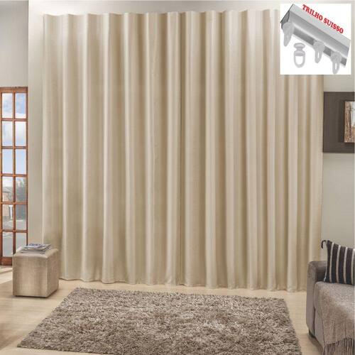 Cortina Top Chick 2 Metros Sala Quarto Tecido Ráfia Trilho Suisso