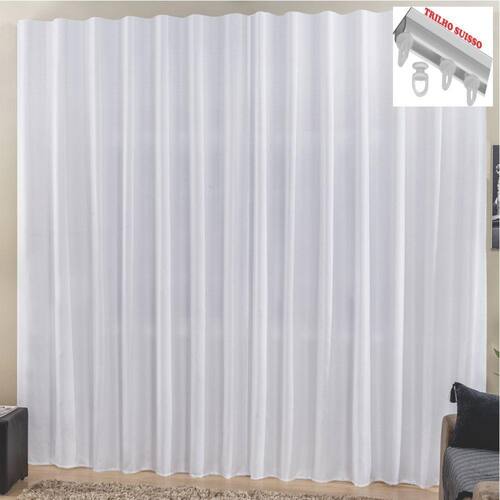 Cortina Top Chick 2 Metros Sala Quarto Tecido Ráfia Trilho Suisso - Branca