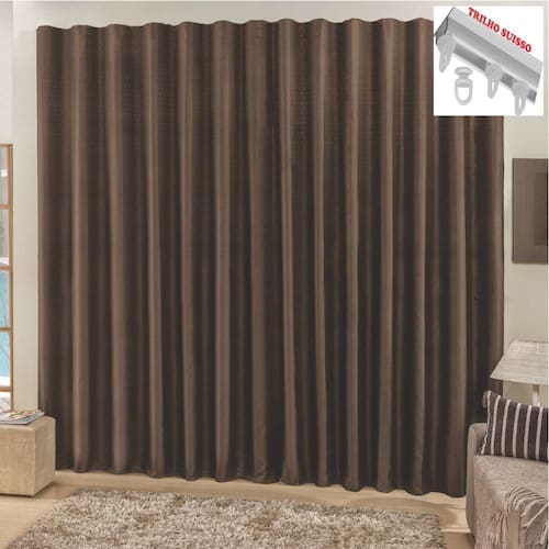 Cortina Top Chick 4 Metros Sala Quarto Tecido Ráfia Trilho Suisso
