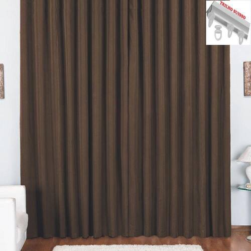 Cortina Tóquio Para Trilho Suisso Max Tecido Oxford 3,00M X 2,80M Janela Quarto Sala - Marrom