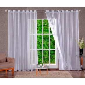 Linda Cortina para Sala ou Quarto Medidas Prontas: Largura 4,00m x Altura 2,80m Dividida em 2 partes de 2,00m x 2,80m Tecido: Voil liso / 100% Poliéster Cor: Branco Acabamento feito na Bainha Ilhós Cromado, indicado para Varão de 28mm Cortina ideal para Varão de até 2,5m Não acompanha o Varão Esta Cortina é de Voil, não forrada Cortina Transparente Marca: Confeccoes Elba