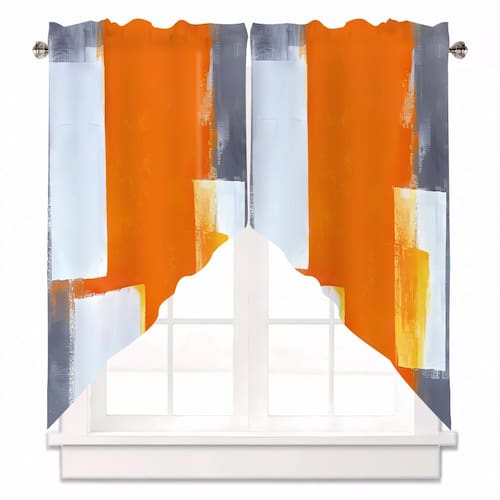 Decoração de casa ideal: estas sanefas de Natal personalizadas combinam bem com painéis de cortina (padrão de design semelhante), pequenas sanefas de Natal para janelas, perfeitas para cobrir a janela superior da sua cozinha, banheiro, lavanderia, estúdio e assim por diante. Estas cortinas atraentes e chiques de Natal para janelas de cozinha, adicionando um toque de cor brilhante à decoração da sua casa. - ?Conjuntos de cortinas de cozinha de 91 cm de comprimento? - Pacote com 2 cortinas de janela de cozinha com pintura a óleo grafite de arte abstrata laranja e cinza, preto e cinza. Cada painel mede 28 de largura x 36 de comprimento (71 cm x 91 cm). - ?Cortinas de saia de material de alta qualidade com bolso para varão? Esta sanefa de cozinha é feita de tecido de poliéster de alta qualidade através de processamento fino, que é durável, pode ser lavada na máquina. O bolso de haste de 7,6 cm serve para vários varões/mastros de cortina padrão ou decorativos. - ?Cortina Blance com redução parcial de ruído e privacidade leve? - Estes painéis de cortina de janela podem ser uma boa sensação de cortina, tornando a janela completamente fechada para reduzir o ruído. Estas cortinas podem filtrar a luz solar e equilibrar o nível de luz entre ambientes internos e externos. Permite que você aproveite a bela paisagem do lado de fora da janela e evita que as pessoas vejam seu cômodo interno diretamente. - ?Decoração de sanefas de casa de fazenda?- As decorações de janela para casa se adaptam à maioria dos lugares e você pode usá-las como camadas ou cortinas. É uma decoração perfeita para sua sala de estar, quarto, sala de jantar, lavanderia, banheiro e cozinha, porão, escritório, janela de trailer, etc. - ?Valência fácil de cuidar? - Como uma necessidade para decoração de casa, as sanefas de janela costumam ser a escolha de presentes de Natal para muitas pessoas. É considerado um presente ideal para mulheres/homens/crianças (amigos, familiares, vizinhos, colegas, etc.), que ganharão seus afetos.
