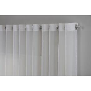 01- cortina em tecido voal liso 5,00 larg x 2,80 alt Ilhós quadrados e cromados prateados brilhantes Cortina aberta ao meio contendo 2 partes de 2,50 larg x 2,80 alt cada