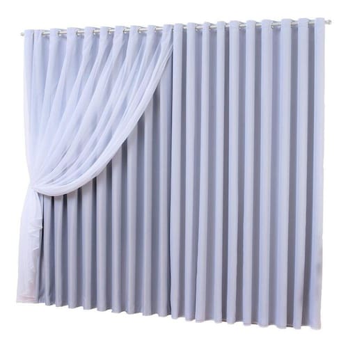 Cortina voal liso forro tecido blackout branco 5,00x2,50 Antes de efetuar a compra leia o anúncio completo para tirar todas as dúvidas Contém na embalagem 01- cortina em tecido 5,00 larg x 2,50 altIlhós quadrados e cromados prateados brilhantes Cortina aberta ao meio contendo 2 partes de 2,50 larg x 2,50 alt cada -recomendado para varao ate 4 metros.Para que ela fique franzida Com acabamento refinado toda em bainha,e com ilhós quadrados cromado, a cortina voal com forro blackout em tecido vem ganhando espaço por ser bem suave e bonita.Alem de deixar o ambiente mais elegante ajuda a manter a sensaçaoTermica do ambiente.... Tecido de expressura grossaFeita com ilhos cromados na parte da frente e preto na parte trás.Instruções de lavagem etiqueta interna do produto Bloqueia a claridade 100%Cortina blackout Observação: a foto é ilustrativa. O produto pode sofrer diferenças na tonalidade de cor, dependendo daConfiguração da tela do seu celular ou computador brilho, contraste etc. Os demais itens composto no cenário da foto varão, poltronas, tapetes , quadros etc. não estão inclusos. Direto da capital nacional do bordado Fabricaçao propria..... Composição100% poliester Marca: B.F Confecçoes