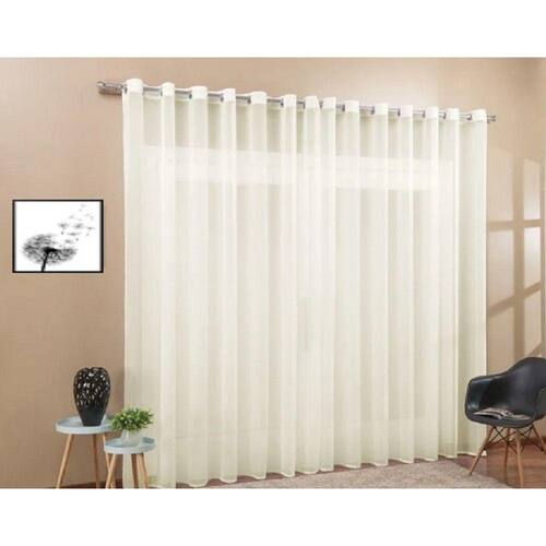 Cortina Voil Branco Sala Quarto 6,00x2,80 Ilhós Cromado - Cor,: Palha