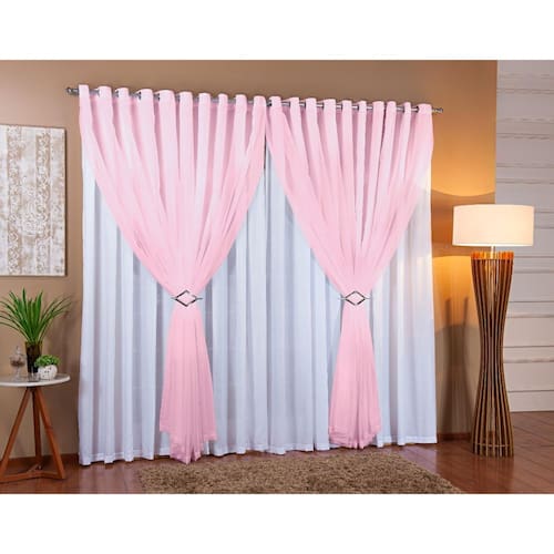 Cortina Voil Com Forro Microfibra Sala E Quarto 7,00 X 2,70 - Branco/Rosa A cortina voil com forro de microfibra combina perfeitamente com a decoração da sua sala, quarto ou escritório Aliando bom gosto, sofisticação e praticidade para um charme perfeito na decoração do ambiente.