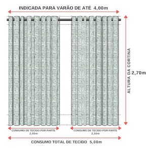 Obs: Consumo é a quantidade de material usado para confeccionar a cortina (medida da cortina totalmente esticada, fora do varão). Não acompanha varão nem suportes para varão. Ilhós já vem montado na cortina. Imagem meramente ilustrativa.
