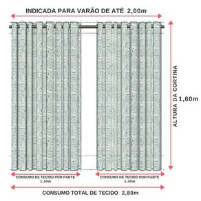 - medidas: após instalada: largura: 2,00m x altura: 1,60m indicada para varão de até 2 metros. Consumo de tecido: largura: 2,80m x altura: 1,60m