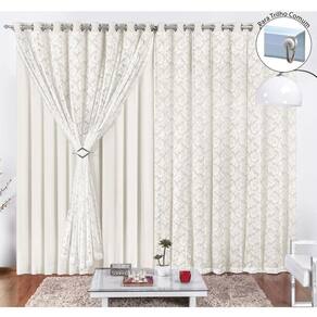 O forro em malha gel proporciona um caimento suave e perfeito, além de oferecer um bloqueio eficiente da luz externa, garantindo privacidade e um ambiente mais aconchegante. Já a parte frontal em renda floral traz um toque de delicadeza e romantismo à cortina, adicionando charme e elegância ao espaço.