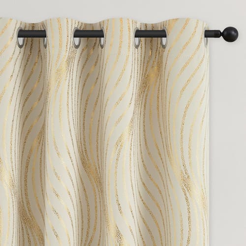 Atualize suas janelas com uma folha dourada em cortinas blackout bege creme 52X84. Capacidade 100% blackout: cada cortina é feita com 3 camadas de forro, incluindo um forro preto na parte de trás que bloqueia efetivamente 99%-100% da luz. Se você precisa tirar uma soneca durante o dia ou desfrutar de uma noite de cinema sem qualquer interferência de luz externa, essas cortinas proporcionam uma experiência completa de blecaute, ajudando você a relaxar e aproveitar seu tempo pessoal. O design de ponto de linha de onda matálico adiciona um toque de elegância e pode complementar vários estilos de interiores, do contemporâneo ao clássico. Estas cortinas para ambientes não são apenas sobre estilo e controle de luz, mas também sobre eficiência energética. O recurso de isolamento térmico ajuda a regular a temperatura em seu quarto, mantendo o calor fora durante o verão e mantendo o calor durante o inverno. O design de ilhós permite fácil instalação e deslizamento suave das cortinas. Os ilhós são feitos de metal durável, garantindo uso duradouro. Este design também adiciona um toque moderno à aparência geral das cortinas. O pacote inclui dois painéis, cada um medindo 213 cm de comprimento. Isso oferece ampla cobertura para a maioria das janelas padrão, garantindo que seu quarto esteja bem vestido e funcional. Uso versátil: embora essas cortinas sejam ideais para quartos e salas de estar, elas também podem ser usadas em outras áreas da sua casa, como cozinha, sala de jantar ou escritório em casa. Seu design versátil as torna adequadas para qualquer cômodo que exija controle de luz e estilo. O material de alta qualidade utilizado nessas cortinas não é apenas durável, mas também fácil de limpar. Basta lavar à máquina em água fria e secar em temperatura baixa para melhores resultados. O tecido grosso também oferece um grau de redução de ruído, ajudando a criar um ambiente mais silencioso e tranquilo. Estas cortinas ajudam a proteger seus móveis, pisos e obras de arte contra desbotamento, bloqueando os raios UV prejudiciais. - Pronto: cada painel mede 132 L x 214 C, com 2 painéis incluídos. A estampa de pontos dourados metálicos Xwincel em cortinas bege creme traz elegância e um toque elegante a qualquer cômodo da sua casa - Brilho dourado metálico: a clássica estampa de pontos de onda dourada nas cortinas adiciona um toque moderno e bonito. Seja no quarto ou na sala de estar, estas cortinas complementam perfeitamente sua decoração - Blecaute eficaz: estas cortinas de 3 camadas com forro preto bloqueiam 100% da luz, equilibram as temperaturas internas e externas, reduzem o ruído e bloqueiam os raios UV. Ideal para home theater ou aqueles que precisam de um ambiente silencioso e escuro durante o dia - Parte superior com ilhós: cada painel de cortina possui 8 ilhós metálicos prateados com um diâmetro interno de 4 cm, ajustando-se à maioria das hastes para fácil instalação e deslizamento suave - Fácil de cuidar: permite lavar à máquina com água fria, secagem em baixa temperatura e passar a ferro em baixa temperatura, sem branqueamento