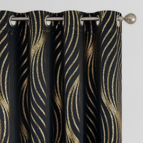 Atualize suas janelas com uma folha dourada em cortinas blackout pretas 52 x 84. Capacidade 100% blackout: cada cortina é feita com 3 camadas de forro, incluindo um forro preto na parte de trás que bloqueia efetivamente 99%-100% da luz. Se você precisa tirar uma soneca durante o dia ou desfrutar de uma noite de cinema sem qualquer interferência de luz externa, essas cortinas proporcionam uma experiência completa de blecaute, ajudando você a relaxar e aproveitar seu tempo pessoal. O design de ponto de linha de onda matálico adiciona um toque de elegância e pode complementar vários estilos de interiores, do contemporâneo ao clássico. Estas cortinas para ambientes não são apenas sobre estilo e controle de luz, mas também sobre eficiência energética. O recurso de isolamento térmico ajuda a regular a temperatura em seu quarto, mantendo o calor fora durante o verão e mantendo o calor durante o inverno. O design de ilhós permite fácil instalação e deslizamento suave das cortinas. Os ilhós são feitos de metal durável, garantindo uso duradouro. Este design também adiciona um toque moderno à aparência geral das cortinas. O pacote inclui dois painéis, cada um medindo 213 cm de comprimento. Isso oferece ampla cobertura para a maioria das janelas padrão, garantindo que seu quarto esteja bem vestido e funcional. Uso versátil: embora essas cortinas sejam ideais para quartos e salas de estar, elas também podem ser usadas em outras áreas da sua casa, como cozinha, sala de jantar ou escritório em casa. Seu design versátil as torna adequadas para qualquer cômodo que exija controle de luz e estilo. O material de alta qualidade utilizado nessas cortinas não é apenas durável, mas também fácil de limpar. Basta lavar à máquina em água fria e secar em temperatura baixa para melhores resultados. O tecido grosso também oferece um grau de redução de ruído, ajudando a criar um ambiente mais silencioso e tranquilo. Estas cortinas ajudam a proteger seus móveis, pisos e obras de arte contra desbotamento, bloqueando os raios UV prejudiciais. - Pronto: cada painel mede 132 L x 214 C, com 2 painéis incluídos. A estampa de pontos dourados metálicos Xwincel em cortinas pretas traz elegância e um toque elegante a qualquer cômodo da sua casa - Brilho dourado metálico: a clássica estampa de pontos de onda dourada nas cortinas adiciona um toque moderno e bonito. Seja no quarto ou na sala de estar, estas cortinas complementam perfeitamente sua decoração - Blecaute eficaz: estas cortinas de 3 camadas com forro preto bloqueiam 100% da luz, equilibram as temperaturas internas e externas, reduzem o ruído e bloqueiam os raios UV. Ideal para home theater ou aqueles que precisam de um ambiente silencioso e escuro durante o dia - Parte superior com ilhós: cada painel de cortina possui 8 ilhós metálicos prateados com um diâmetro interno de 4 cm, ajustando-se à maioria das hastes para fácil instalação e deslizamento suave - Fácil de cuidar: permite lavar à máquina com água fria, secagem em baixa temperatura e passar a ferro em baixa temperatura, sem branqueamento