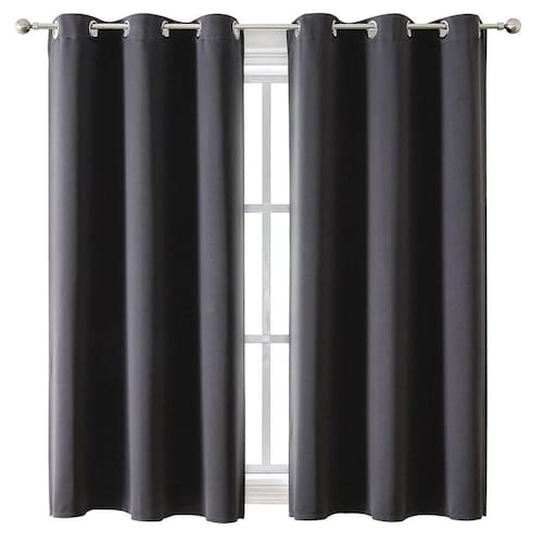 - DETALHES DO CONJUNTO: 2 cortinas cinza carvão por pacote. Cada painel mede 42 polegadas de largura por 63 polegadas de comprimento com 6 ilhós de metal prateado (1,6 polegadas de diâmetro interno) na parte superior, fáceis de instalar e deslizar.