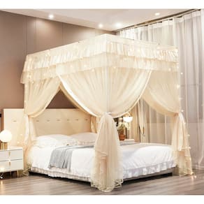 Package Include: 1 x Bed Canopy Size Information: Twin Size: 39\"X 78\"X 78\" Full Size:53\"X 78\"X 78\" Queen Size:59\"X 78\"X 78\" King Size:78\"X 78\"X 78\" California King Size:78\"X 86\"X 78\" How to care for the product: Machine Wash Cold Keep away from sharp objects Ironing is not recommended - Tamanho: solteiro = 99 cm x 198 cm x 198 cm, as luzes e postes na imagem não estão incluídos. - Proteção completa com uma parte superior: design clássico de 4 aberturas, oferece a você um espaço de conforto quadridimensional. O lado da cabeceira é um pedaço de rede inteira e com uma parte superior à prova de poeira. É mais científico para ajudar você a ter um sono aconchegante e harmonioso em sua terra particular. - O pacote inclui: cobertura de cama x 1 + fita x 4. Se você precisar de postes de cama/moldura, você também pode comprá-lo em nossa loja. - Design de princesa dos sonhos: mais do que um simples dossel, o design engenhoso de cortinas de cama torna sua própria cama uma obra de arte, cria uma atmosfera de sonho e adorável para meninas. Transforme seu quarto em um palácio luminoso e realize a fantasia infantil de princesa. - Serviço 100% satisfeito: se houver alguma dúvida, sinta-se à vontade para entrar em contato conosco, nossa equipe de atendimento ao cliente responderá em 24 horas. Se houver alguma peça ausente ou danificada durante o envio, primeiro, resolveremos o problema da maneira que você quiser.