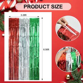 FLÂMULAS DE PORTA TONIFUL, 3 peças de flâmulas vermelhas, prateado, verde, cabine fotográfica, flâmulas metálicas, cortinas com franjas metálicas para aniversário, Natal, Ano Novo, despedida de solteira, decoração de flâmulas de formatura (9,9 pés x 6,6 pés)