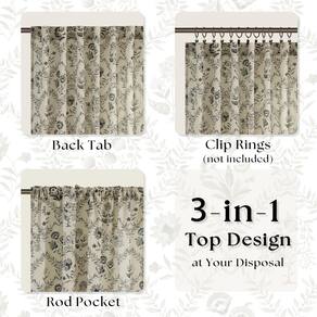 Uma nova ampla variedade atualizada de cortinas de linho floral é o toque final perfeito para o seu interior. Nossas cortinas de linho floral com composição de linho e poliéster combinam o melhor delas, oferecendo uma mistura de estética natural, suavidade e durabilidade. As estampas de folhas e flores de papoula nessas cortinas são mais do que apenas padrões; elas são uma celebração da beleza da natureza. As folhas simbolizam crescimento e vitalidade, enquanto as papoulas adicionam um toque de romance e charme. Estas cortinas filtram a luz solar, criando um brilho suave e quente em sua sala de estar. O padrão floral adiciona uma sensação de aconchego e conforto, tornando sua casa um retiro tranquilo. Seja na sala de estar, quarto ou sala de jantar, elas criam uma atmosfera relaxante. Oferece um visual clássico e atemporal que complementa sem esforço vários estilos de decoração de casa, incluindo casa de fazenda boho, rústico, chique moderno. - Design exclusivo de estampa floral: com uma combinação encantadora de estampas de folhas e flores de papoula, nossas cortinas florais adicionam um toque de beleza inspirada na natureza a qualquer cômodo. Os padrões detalhados e vívidos criam um ponto focal atraente, tornando-os perfeitos para estilos de decoração modernos e tradicionais - Mistura de linho natural: Estas cortinas florais são feitas de uma mistura de linho e poliéster. O linho oferece uma textura natural e respirável, enquanto o poliéster adiciona durabilidade e resistência a rugas. Esta combinação garante uso duradouro e fácil manutenção - Filtro de luz e privacidade: nossas cortinas de linho florais não apenas fornecem privacidade, mas também filtram a luz solar. O padrão floral adiciona uma sensação de aconchego e conforto, seja na sala de estar, quarto ou sala de jantar, eles criam uma atmosfera relaxante - Várias opções de suspensão: estas cortinas de linho impressas oferecem 3 opções de pendurar para você: (1) Usar as abas traseiras para criar um efeito plissado elegante; (2) Do bolso de haste de 7,6 cm para um visual clássico; (3) Usar anéis de clipe para facilitar a abertura/fechamento (anéis de clipe não estão incluídos). Você pode escolher o estilo certo para combinar com a decoração da sua casa - Pronto e fácil de cuidar: 2 painéis por pacote, cada painel mede 132 cm de largura e 213 cm de comprimento. Basta lavar em água fria, secar em temperatura baixa e passar na configuração mais baixa, se necessário