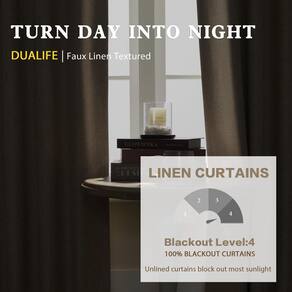A Dualife como facilitadora é proteger sua qualidade de vida. "Dual" significa qualidade maravilhosa e cores modernas. Sweet Life com satisfação e felicidade. Linda textura de linho: trabalho trabalhado com textura de linho luxuosa, adicione vida casual e aconchegante à sua casa. As cortinas blackout DUALIFEsem luz são criadas com um material de estilo de linho texturizado macio para um visual lindo. Estas cortinas de linho grossas são versáteis, seja qual for o estilo moderno de casa de fazenda ou decoração tradicional. Amplamente utilizado para quarto, sala de estar, pátio, quarto de berçário, casa de fazenda, divisor de quarto, sala de jantar, porta deslizante, lavanderia. Cortinas blackout de linho são mais duráveis, suavidade, rugas . Lavável na máquina. 2 painéis cada pacote, largura da cortina 86 cm 127 cm, 182 cm, 213 cm, três comprimentos 137 cm, 160 cm, 182 cm, 203 cm, 213 cm, 228 cm, 243 cm, 243 cm, 243 cm, 276 cm, 270 cm, 270 cm, 270 4,3 cm. 304,8 cm, 335,3 cm Você pode pendurar suas cortinas pretas com 4 métodos. Uso amplo para sua maneira de pendurar preferida. (1) Use os laços traseiros para criar um efeito plissado elegante. (2) Um estilo clássico de bolso de haste, design de bolso para haste cria pregas facilmente, adicionando estilo decorativo. passando o bolso da haste de 8,4 cm. (3) Usando seu próprio anel de clipe (4) Usando pequenos ganchos no cinto de gancho e fixando em seus próprios anéis. (Anéis e ganchos não estão incluídos). Então você terá um estilo elegante de cortinas de janela plissadas. Temos diferentes cores e tamanhos para atender ao seu estilo. Pode bloquear 100% da luz solar brilhante e dos raios UV, virar de dia para noite, desfrutar do seu doce sono e proteger seus móveis do desbotamento da cor, proporcionando privacidade em sua adorável casa. - Informações básicas: conjunto de 2 painéis de linho blackout por pacote. Possui estilos de pendurar com aba traseira e bolso para haste para um estilo versátil. A parte superior das cortinas blackout de linho sintético com bolso de 7,6 cm e com seus próprios clip-rings, ganchos de chuveiro, ganchos de pino e ganchos de pregas. Meça a largura e a altura da sua janela com antecedência para obter o efeito decorativo e funcional desejado. Nossas cortinas são puramente feitas à mão. feito, pode haver 2,5 a 7,6 cm de erro no tamanho. - MATERIAL INOVADO: nossas cortinas blackout de linho são feitas de um tecido de mistura de linho, as cortinas são feitas de tecido de trama tripla, frente e traseira são um material de cor homocromática. (Exceto branca) A camada intermediária é preta, o que pode bloquear 100% do sol para que a cor do objeto pareça um pouco escura. Nossas cortinas blackout drapejam bem. As cortinas resistentes com isolamento térmico mantêm o calor dentro de casa no inverno e descarregam o calor no verão equilibram a temperatura ambiente. - Blackout total: cortinas térmicas para quartos podem efetivamente reduzir o impacto do ruído e proporcionar um ambiente de vida de qualidade silencioso e confortável. E também mantêm completamente fora da luz solar e dos raios UV. Oferece uma barreira isolada contra o calor do verão e o frio do inverno para equilibrar a temperatura ambiente e economizar energia. É adequado para quarto, sala de estar, pátio, portas deslizantes, teatros, conjunto. O comprimento longo oferece ampla cobertura, tornando-as ideais para janelas maiores ou tetos altos. - Versátil e adaptável: o tecido rico de linho misturado com poliéster apresenta um tom de linho neutro, efeito primitivo e natural torna os painéis mais drapeados e estéticos. Sensação de toque macio premium nessas elegantes cortinas de mistura de linho, adicionam um charme refrescante à sua janela. A textura de cor lisa e casual é perfeita para uma casa de fazenda rústica moderna, country chique, rústico ou estilo clássico tradicional. - Fácil de cuidar: lavável na máquina em água fria, use apenas alvejante sem cloro quando necessário, secar em temperatura baixa e passar a ferro quente conforme necessário.