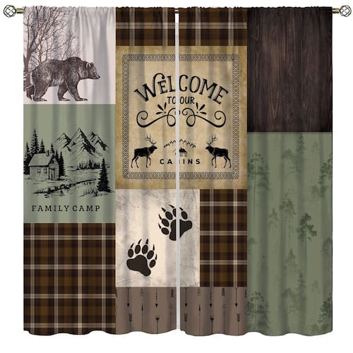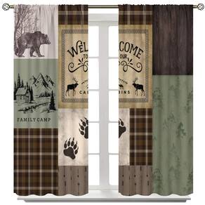 Cortinas Ginness Cabin Retro Rustic Lodge Bear Deer Moose 214
