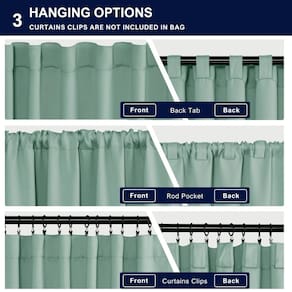 As cortinas blackout Hiasan Rod Edição de Bolso e Back Tab com 2 prendedores ajudam a manter suas cortinas abertas com o mínimo de esforço. Você pode reduzir despesas extras para seus tratamentos de janela. Para amarrar as duas extremidades dos prendedores e depois ajustá-lo de acordo com a espessura da sua cortina. Estas cortinas blackout pesadas oferecem uma solução contemporânea para segurar cortinas sem a necessidade de ferramentas ou perfurar furos no acabamento ou nas paredes. Características: Bloqueia 85%-206% da luz solar e dos raios UV Isolamento térmico e redução de ruído Proteção espessa e de privacidade Disponível em vários tamanhos e cores Quanto mais escura a cor, melhor o desempenho do blecaute Fácil de cuidar: Lavar à máquina em água fria. Secar em temperatura baixa. Passar a ferro a baixa Não usar alvejante - Informações básicas: Seu pacote inclui um conjunto de 2 painéis de cortina. Cada painel mede 52 W por 45 L polegadas com 3 estilos de pendurar para escolher: laços traseiros, bolso para haste ou com seus próprios anéis de clipe - Design especial: Swen com 2 laços em ambos os lados da cortina, você pode apertar ou desatar as cortinas para controlar a luz de acordo com sua preferência e você não precisa gastar dinheiro em laços extras de cortina - Efeito blackout: estas cortinas blackout podem reduzir e bloquear 85%-98% da luz solar (as cortinas de cor escura funcionam melhor), equilibrar a temperatura interna e externa e proporcionar uma boa noite de sono ou um bom ambiente de descanso - Conforto: essas cortinas térmicas são eficazes para evitar tanto o frio no inverno quanto o calor no verão, enquanto protegem seus móveis da luz UV prejudicial. Perfeito para sala de estar, berçário, quarto, hotel e mais - Instruções de cuidados: Lavável na máquina em água fria, ciclo delicado, secar em temperatura baixa, não usar alvejante, passar a ferro em baixa temperatura, se necessário. Meça o tamanho do mastro e da janela antes de escolher as cortinas. com qualquer problema