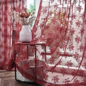 Cortinas Kotile Burgundy Lace 160x160cm 2 painéis transparentes