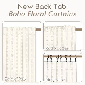 - Cortinas Boho atualizadas: Ouvimos a voz de nossos clientes e ajustamos as cortinas de aba superior às traseiras que parecem mais perfeitas, criando um visual macio de cortinas plissadas. TAMBÉM ajustamos o padrão um pouco com o design clássico tradicional boho DIAMODN com videiras botânicas florais para uma vibração mais boho-chique.